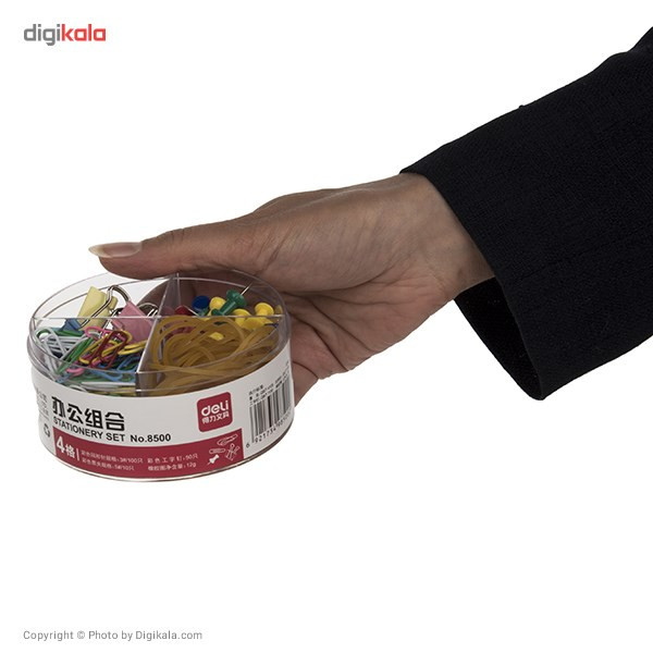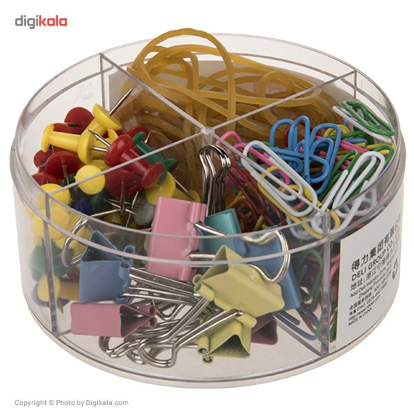 ریخت و پاش نبودن میزتحریر و میزهای اداری از مواردی است که تاثیر مستقیم با تمرکز هنگام درس خواندن و کار کردن دارد. کش، گیره کاغذ کلیپسی، گیره کاغذ معمولی و سوزن نقشه را باید طوری دسته بندی کرد که هنگام استفاده درهم ریخته نبوده و به صورت تفکیک شده باشند. ست لوازم جانبی اداری دلی کد 8500 یک وسیلهی کاربردی جهت استفاده در این امر است. این ست با همراه داشتن کش، گیره کاغذ کلیپسی، گیره کاغذ معمولی و سوزن نقشه میتواند نیاز شما به این وسایل را برطرف کرده و میزی جمع و جور را برایتان فراهم کند.