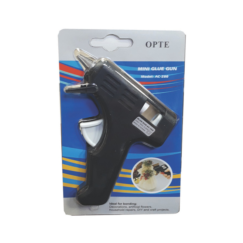 تفنگ حرارتی اُپتی Opte مدل ac-280 ابزار قدرتمندی است که به شما این امکان را می دهد تا برای اتصال و پوشش قطعات و سطوح مختلف، از چسب های حرارتی استفاده کنید. این دستگاه که به صورت برقی است، در مشاغل مختلفی استفاده میشود. شرکتهای مختلف نمونههای متعددی از این دستگاه را تولید کردهاند. شرکت اپتی هم این نوع دستگاه را تولید کرده است. دستگاه چسب تفنگی مدل AC-280 محصولی است که با برند Opte به بازار معرفیشده است. این محصول با برق شهری کار میکند و 20 وات توان دارد. ابعاد کوچک و وزن کم این مدل استفاده از آن را آسانتر کرده است.در نظر داشته باشید که در زمان کار با این دستگاه و استفاده از چسب حرارتی، از دست زدن به نازل دستگاه یا چسب خارجشده از آن خودداری کنید زیرا باعث سوختگی پوست خواهد شد. Opte اپتی شرکتی است که درزمینهی تولید ابزارهای کوچک نظیر چسبهای حرارتی، هویه، لوازم جانبی هویه، چند راهی برق و مواردی از این دست فعالیت میکند. محصولات این شرکت کیفیت قابل قبولی دارد و برای مصارف خانگی و تجاری مناسب است.
