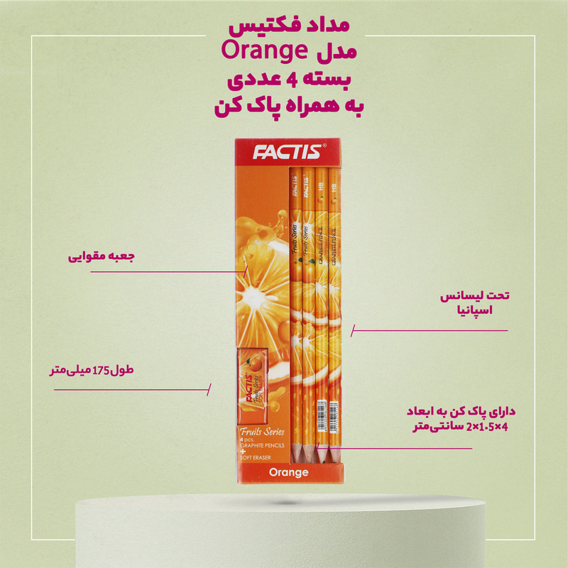 مداد فکتیس مدل Orange بسته 4 عددی به همراه پاک کن