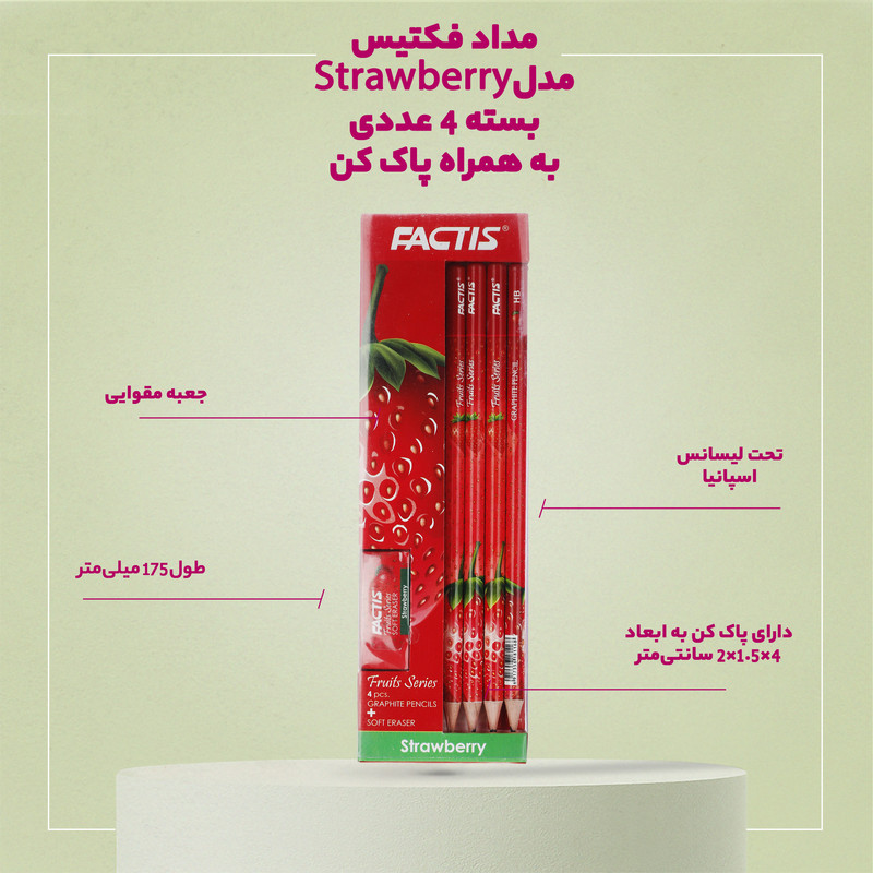 مداد فکتیس مدل Strawberry بسته 4 عددی به همراه پاک کن