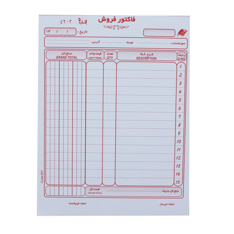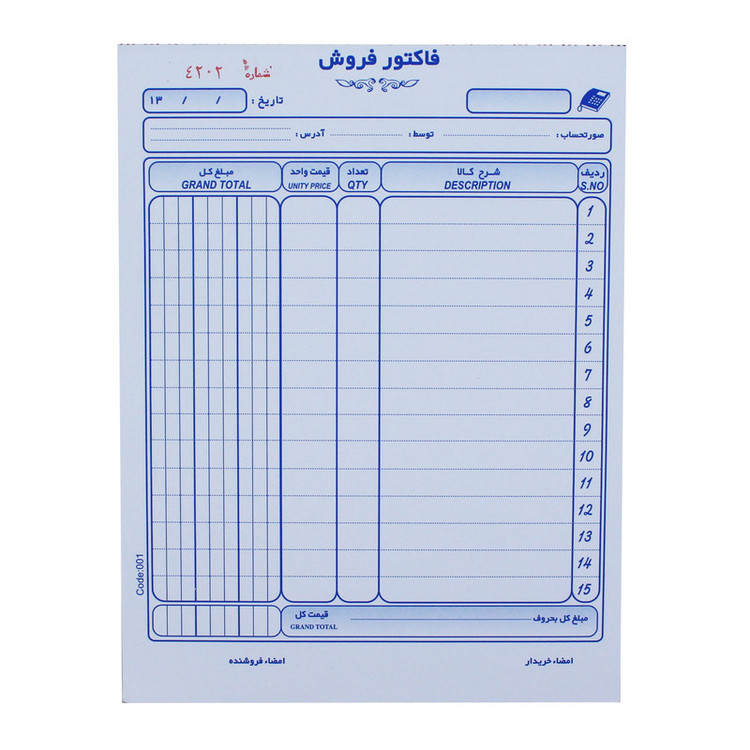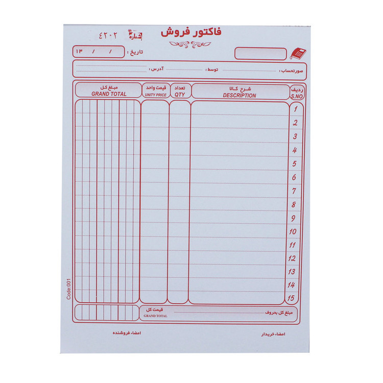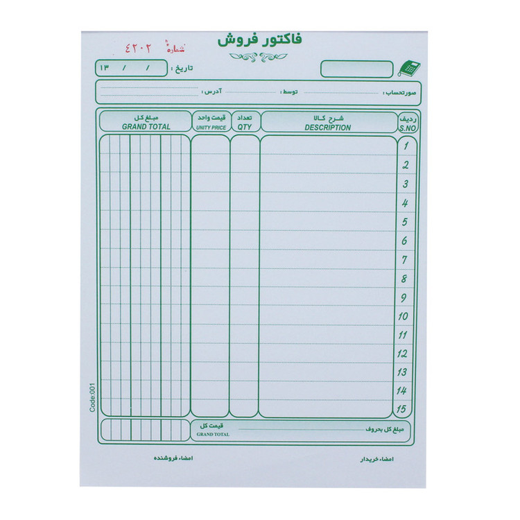 - فاکتور سه نسخه - بدون کاربن