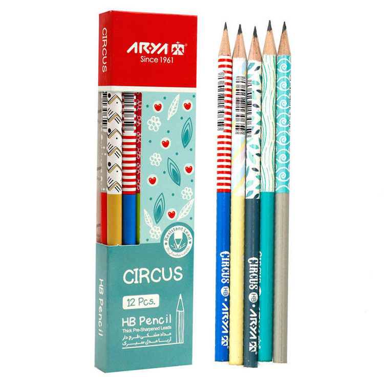 ساخته شده از جنس چوب مقاوم با امکان تراشیدن آسان، درجه سختی نوک HB، طرح های متنوع تعداد 12 عدد، رنگ نوشتاری مشکی در جعبه ای مقوایی، در طرح ها و رنگ های متنوع پررنگ و روان و مقاوم در برابر شکستگی