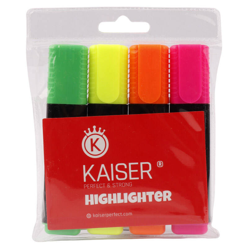 ماژیک هایلاتر کایزر مدل SK-814 دارای بسته 4 عددی است . از ویژگی محصول خشک شدن سریع بدون ایجاد لکه در پشت کاغذ، رنگ بسیار با کیفیت با طول عمر بالای محصول