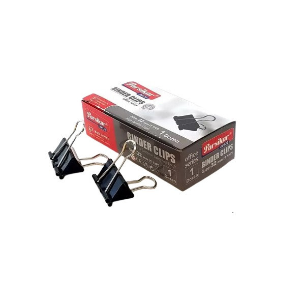 دسته گیره کاغذ پارسیکار از استیل ضد زنگ و فک این گیره دوبل با رنگ الکترواستاتیک پوشیده شده است و در بسته 12 عددی میباشد.