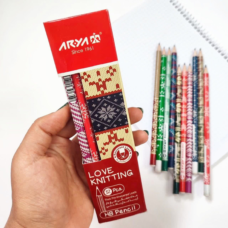مداد مشکی آریا طرح بافتنی love knitting بسته 12 عددی با کیفیت عالی و ظاهری زیبا مناسب استفاده دانشجویان و دانشآموزان میباشد.