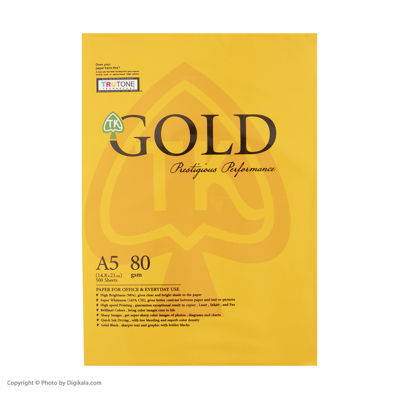 سایر توضیحات: کاغذ گلد (GOLD)که معرف حضور است در سایز A5 می باشد. با کاربری چاپ معمولی است.وزن این کاغذ 80گرمی می باشد.ابعاد آن 148x210 است.