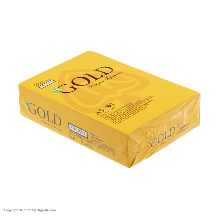کاغذ گلد (GOLD)که معرف حضور است در سایز A5 می باشد. با کاربری چاپ معمولی است.وزن این کاغذ 80گرمی می باشد.ابعاد آن 148x210 است.