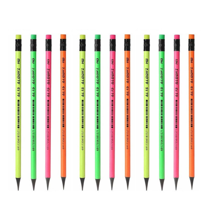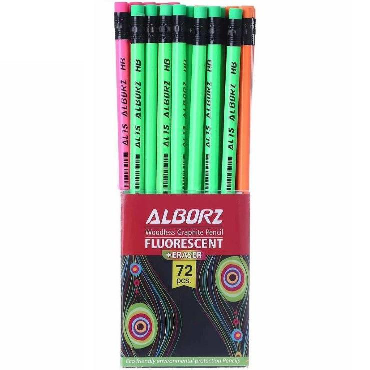 این بسته شامل 12 عدد مداد مشکی فلورسنت پاک کن دار البرز می باشد. که شامل 4 رنگ بدنه مختلف می باشد
