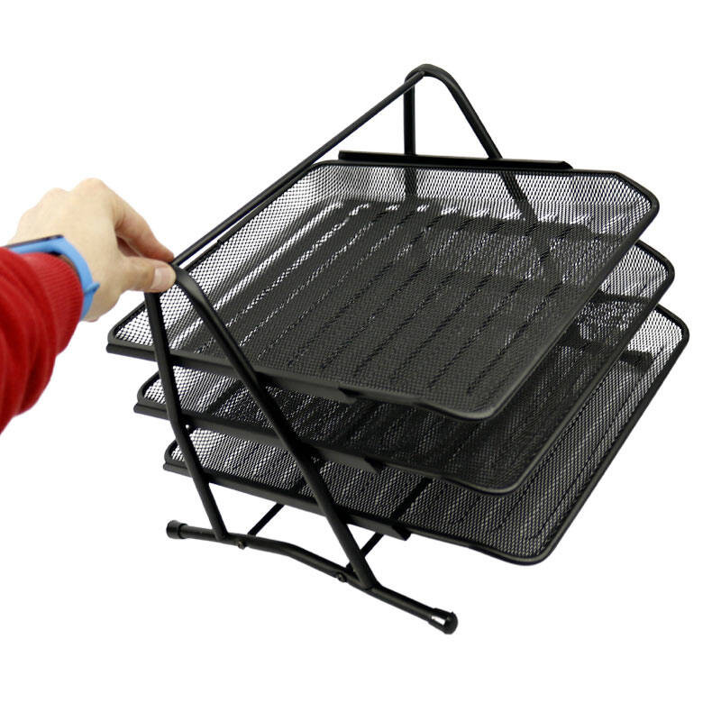 دارای 3 طبقه (سینی) جداگانه جهت دسته بندی و بایگانی اسناد، کاغذ، مجله و … ابعاد محصول 33×25×30 سانتی متر، بدنه ای مقاوم از جنس فلز، سبک و قابل حمل
