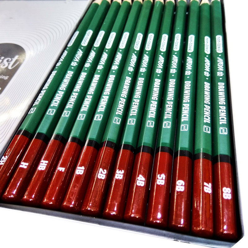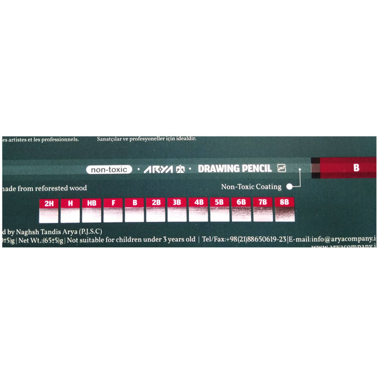 مغزی با کیفیت چوب مداد بدست آمده از جنگل های تجدید پذیر روکش مداد از مواد غیر مضر و غیر سمی بسته حاوی درجات سختی مختلف مغز مداد (2H,H,HB,F,B,2B,3B,4B,5B,6B,7B,8B)
