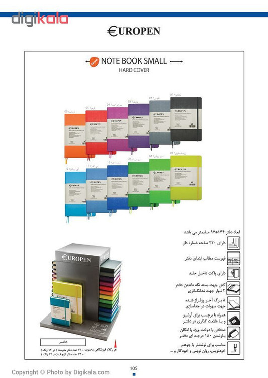برای یافتن ایدهای مناسب، زمانی که میخواهیم تصمیمی مهم و سریع بگیریم، وقتی بخواهیم به جوابی صحیح و دقیق در کمترین وقت برسیم، زمانی که نیاز به تقویت قدرت نوشتاری خود داریم، همیشه وهمه جا، یک دفترچه یادداشت کوچک همراه خودت داشتن، بهترین روش ممکن برای به حقوق پیوستن این موارد است، حتما از نتیجهی حاصل آمده شگفتزده خواهید شد. در اکثر مواقع بعضی کارهای موثر و مهم را از فرط سادگی دست کم میگیریم و پشت گوش میاندازیم. همراه داشتن دفترچه یادداشت هم از این جنس کارهاست. ضمناً گوشی هرگز جای نوشتن روی کاغذ را نمیگیرد. کاغذ و قلم، همراهان همیشگی یک فرد خلاق هستند. دفتر یوروپن مدل Small-A6یک دفتر یادداشت مناسب برای انجام کارهای روزمره شماست. ابعاد آن 1×9×14 سانتیمتر است و بهراحتی در همه جا، جای میگیرد. برای ویژگیهای این نت بوک کوچک میتوان به دارای بودن 220 صفحه شماره دار - فهرست مطالب ابتدای دفتر - دارای پاکت داخل جلد - کش جهت بسته نگه داشتن دفتر - 8 برگ پرفراژ شده جهت سهولت در جداسازی - همراه با برچسب برای آرشیو سازی - صحافی با دوخت ویژه اشاره کرد که این دفتر یادداشت را منحصر به فرد میکند.