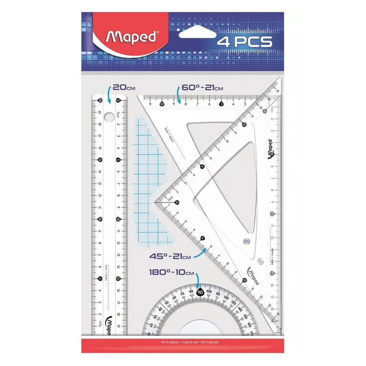 ست خط کش گونیا و نقاله مپد مدل کریستال کد 21cm بسته 4 عددی