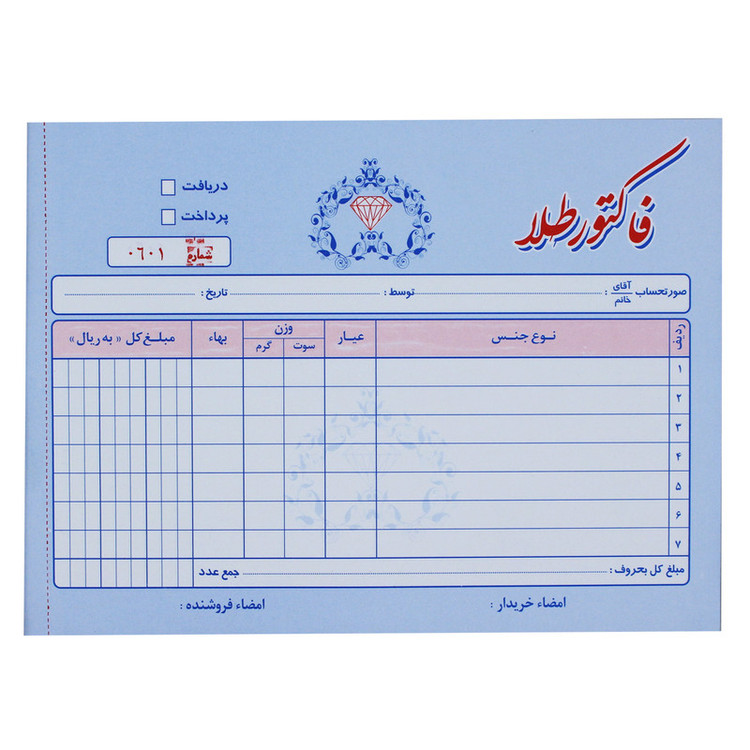 - فاکتور اختصاصی طلا - 50 نسخه دو برگ - کاربن دار
