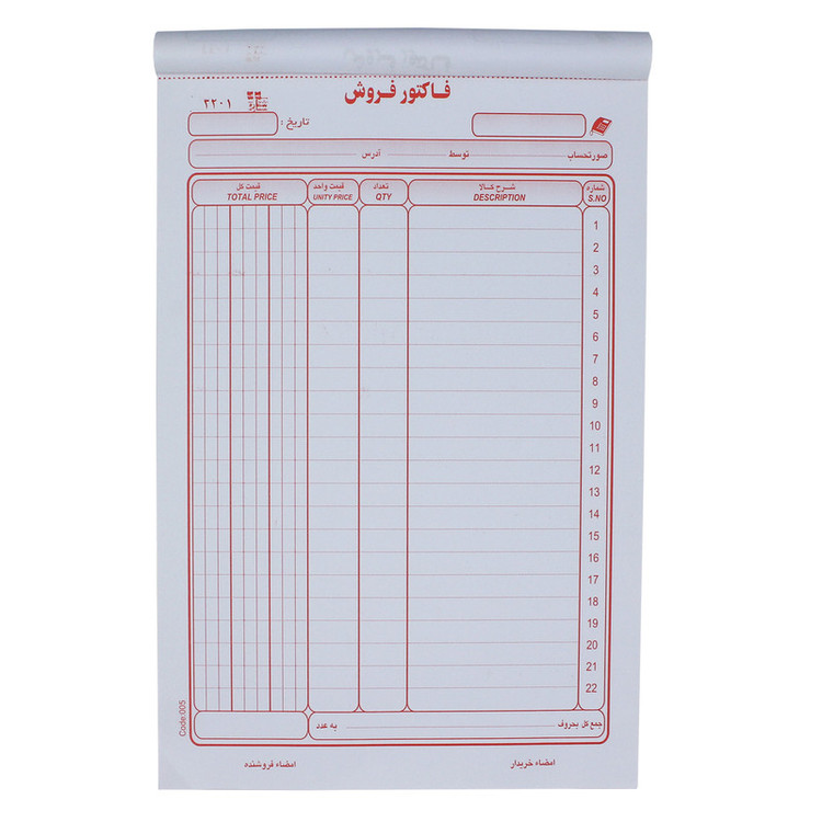 - 50 نسخه سه برگ - بدون کاربن -تقریبا معادل A4