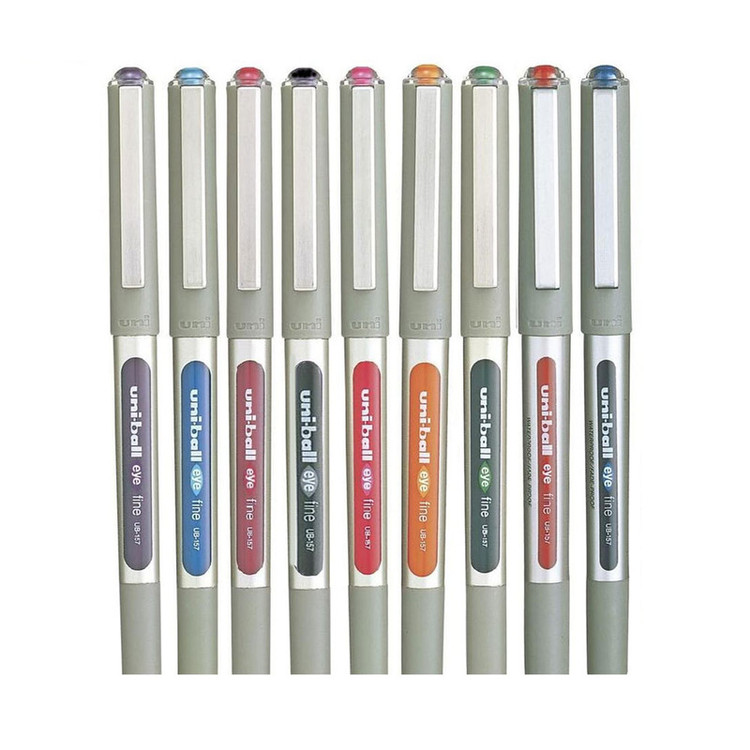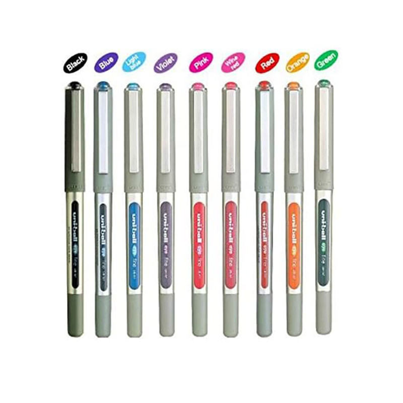 مجموعه ی 9 عددی روان نویس یونی بال که شامل رنگ های مشکی و سرمه ای و قرمز و نارنجی و زرشکی و صورتی و سبز و ابی فیروزه ای و بنفش است. این روان نویس ها ساخت کشور ژاپن است.